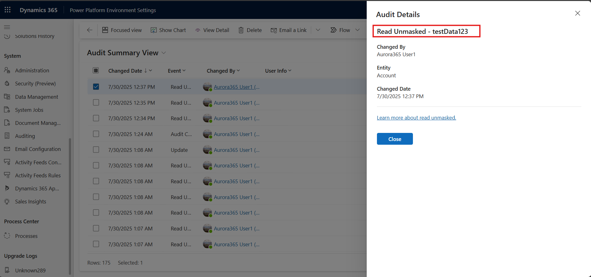 Korisnici sustava i aplikacija s dozvolama za čitanje i čitanje bez maske prema zadanim postavkama dobivaju maskirane vrijednosti. Da biste pročitali nemaskirane vrijednosti, idite na opcije za prikaz maskiranih stupaca.