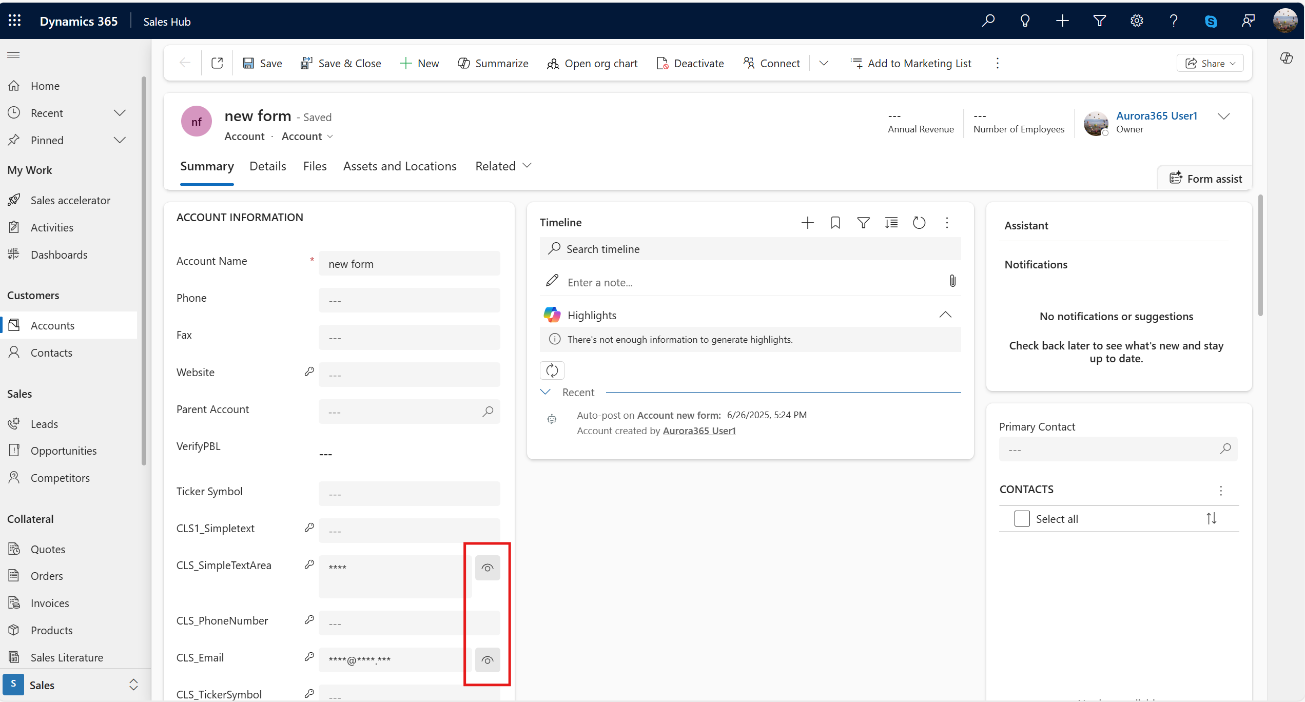 Kada stvorite novi zapis, unosite osjetljivi stupac kao nemaskirane vrijednosti. Nakon spremanja obrazac se automatski osvježava, a osjetljivi stupac odmah se maskira. Možete ažurirati stupac, ali obavezno unesite nemaskirane vrijednosti.