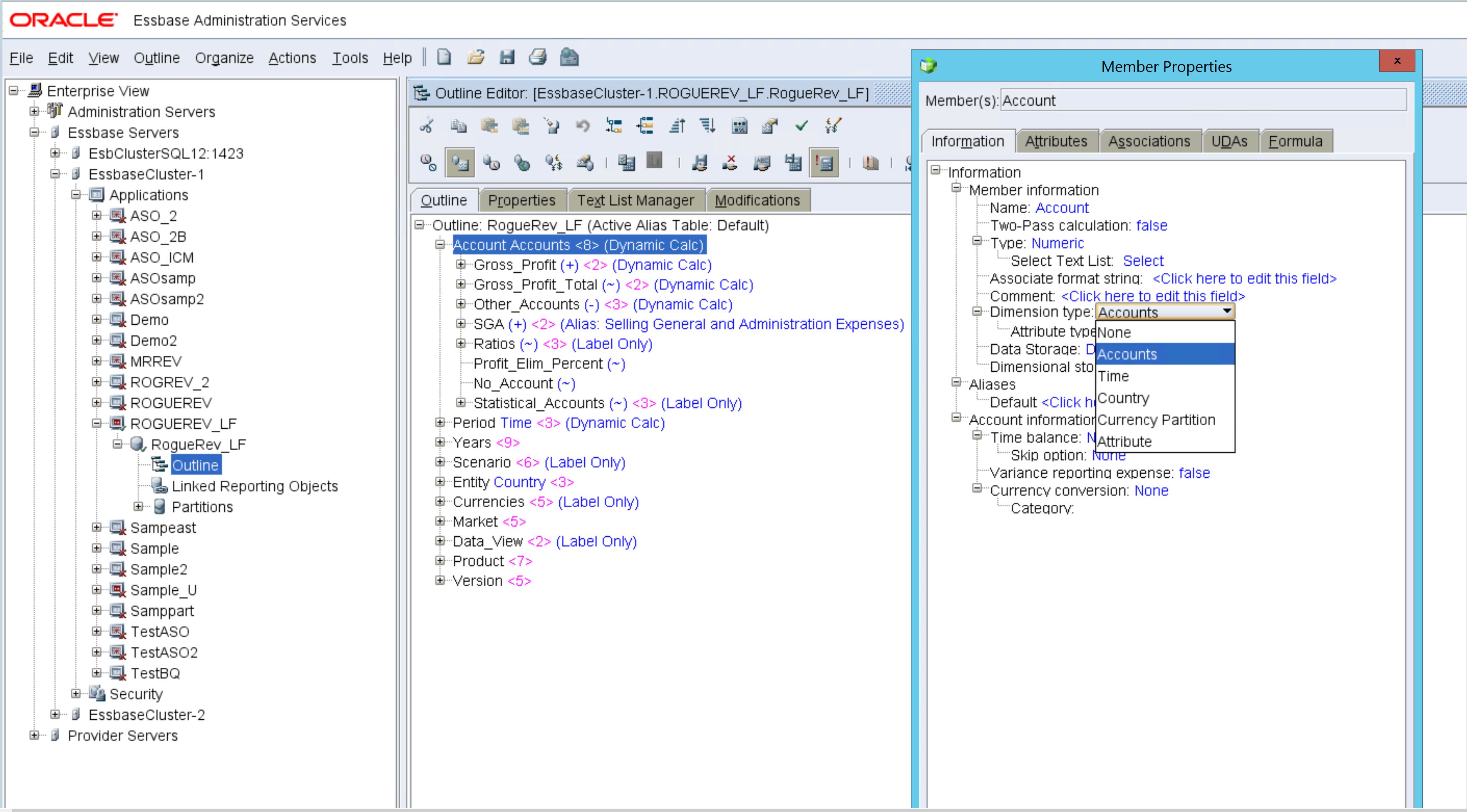 Determine which dimension should be the "Accounts" dimension type. Right-click it and select Edit member properties….
