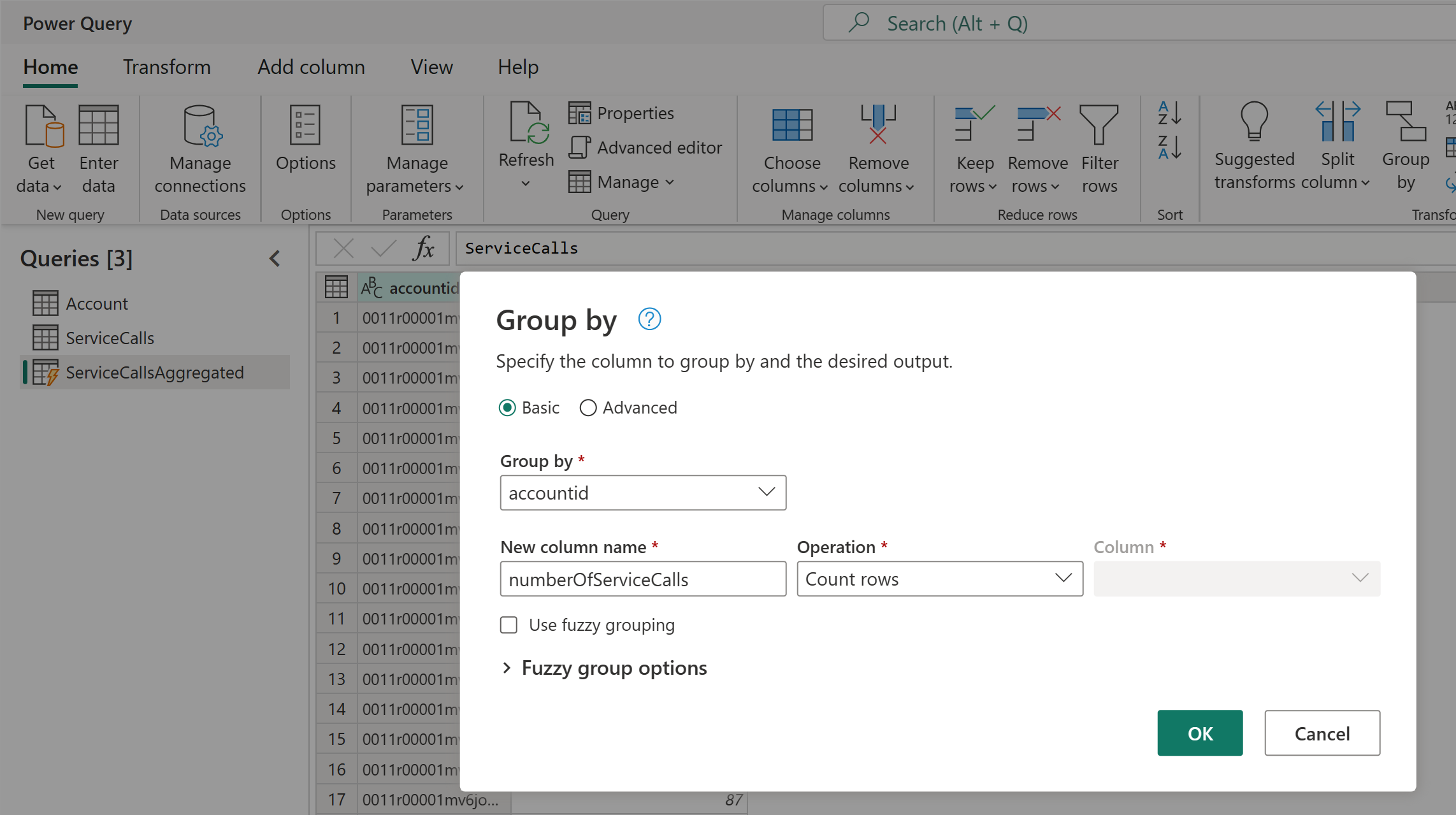 Consider the following example. You have an Account table that contains the raw data for all the customers from your Dynamics 365 subscription. You also have ServiceCalls raw data from the service center, with data from the support calls that were performed from the different accounts on each day of the year.