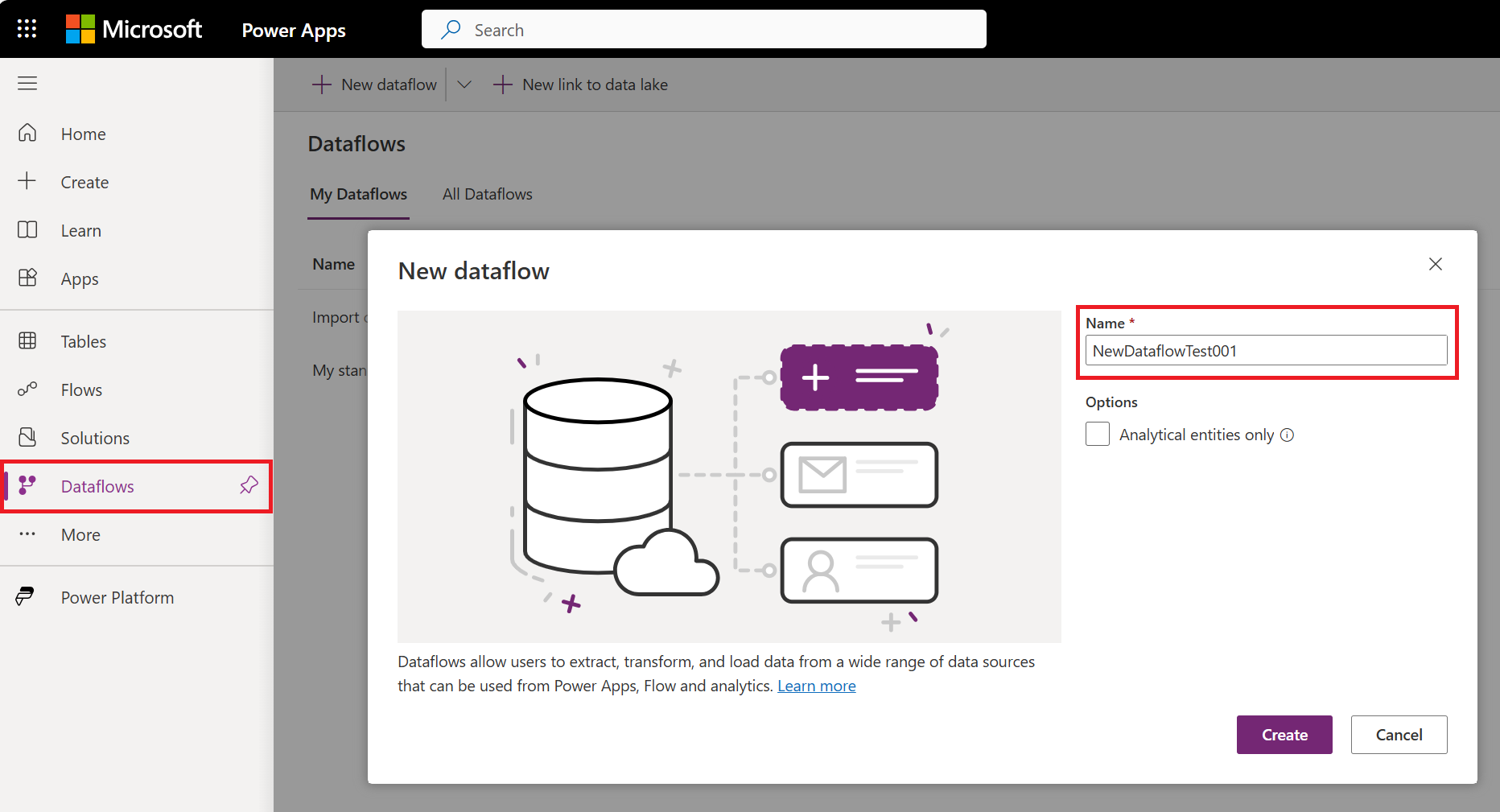 This article describes how to create dataflows by using these data sources. For an overview of how to create and use dataflows, go to Creating a dataflow for Power BI service and Create and use dataflows in Power Apps.