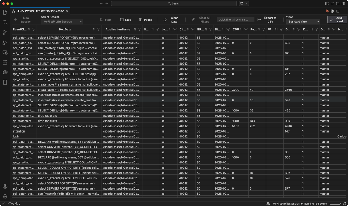 The Query Profiler in the MSSQL extension for Visual Studio Code captures and monitors database activity in real time using Extended Events. You can observe live T-SQL activity, identify slow operations, and find performance bottlenecks during development.