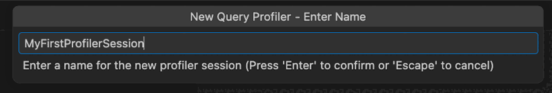 ON DATABASE) rather than the server. Lock and duration-filtered templates aren't available for these connections.Enter a Session name. Press Enter to confirm or Escape to cancel.