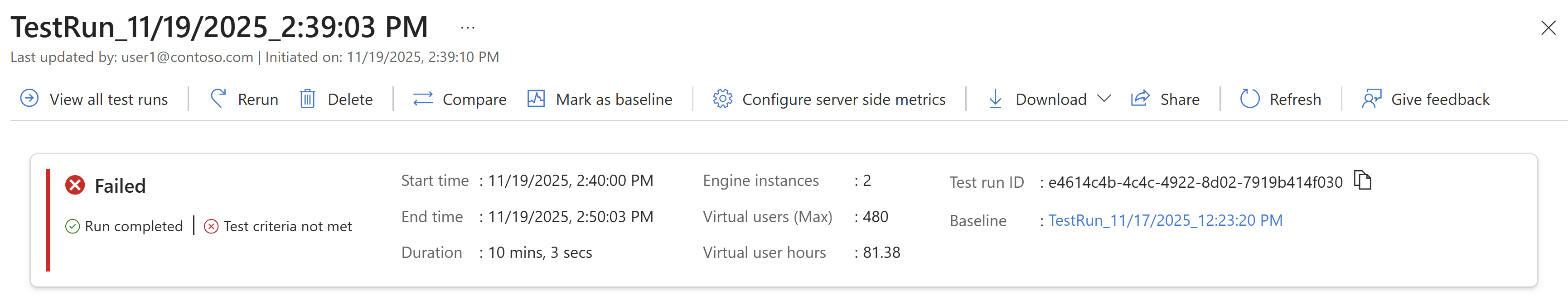 Ha alapkonfigurációként konfigurált egy tesztfuttatást, az alapkonfigurációs futtatás metrikáival is összehasonlíthatja ezeket a metrikákat.