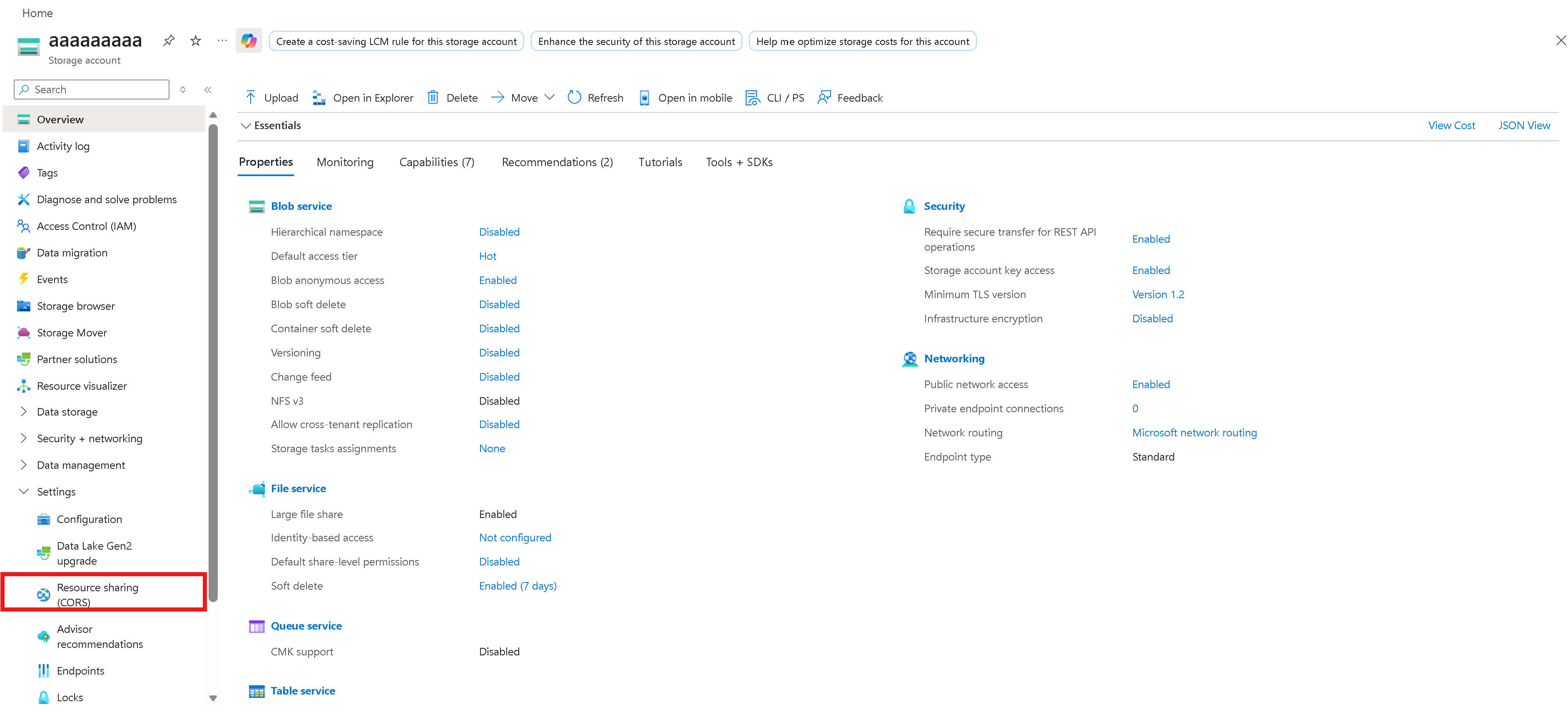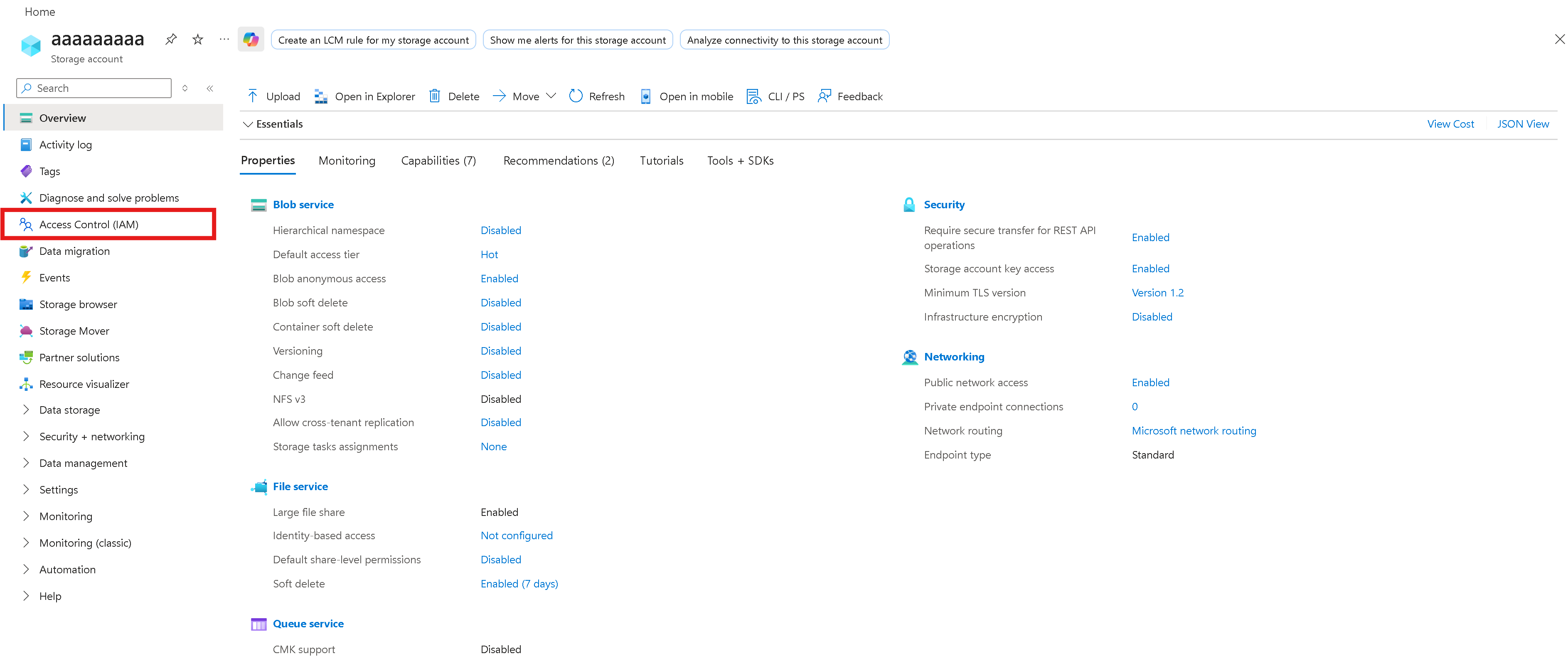 Nyissa meg a társított tárfiókot az Azure Portalon.