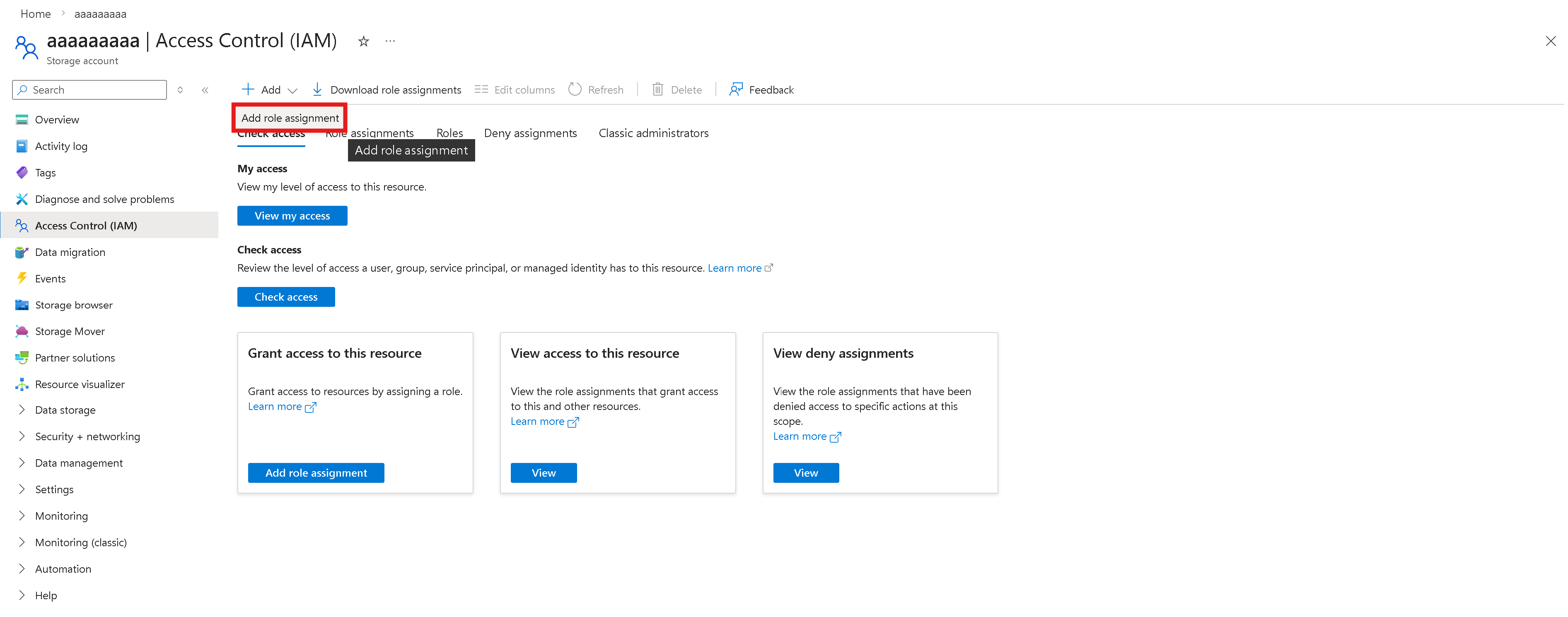Válassza a Szerepkör-hozzárendelés hozzáadása lehetőséget.