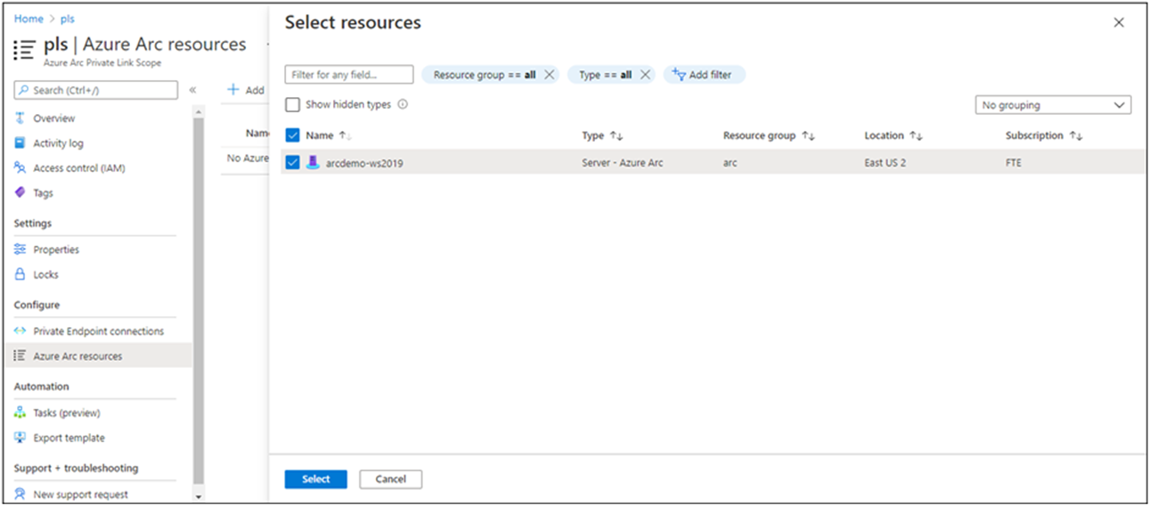 Az Azure Portalon nyissa meg az Azure Arc privát kapcsolati hatókörű erőforrását.