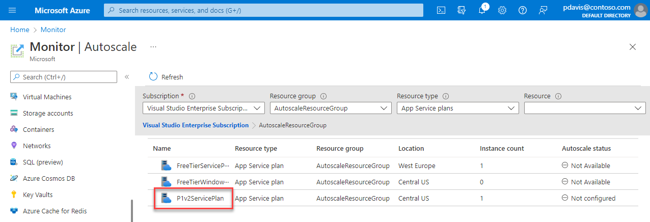 Keresse meg és válassza ki az automatikus skálázást a keresősávon, vagy válassza az Automatikus skálázás lehetőséget a bal oldali menüsáv Figyelő területén.