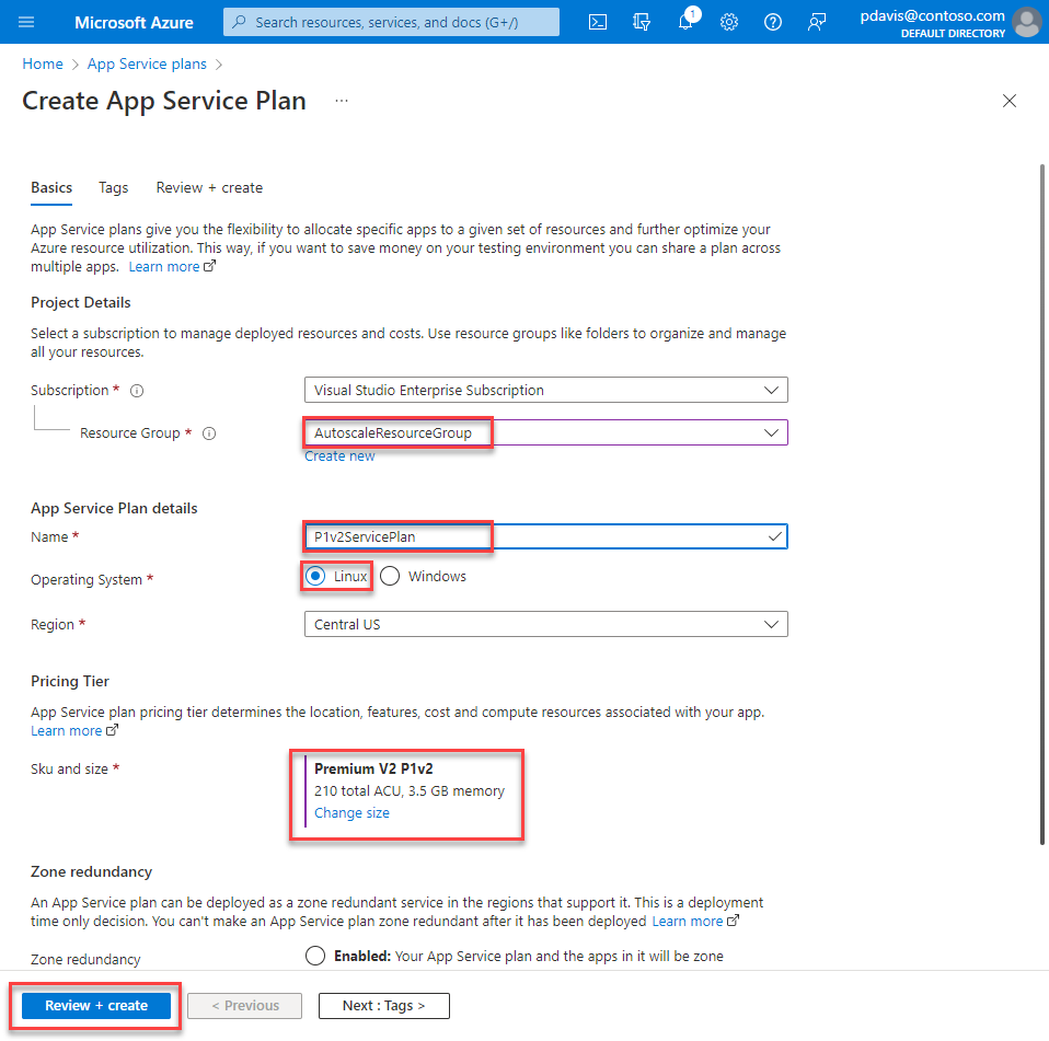- Ha még nem rendelkezik ilyen csomaggal, hozzon létre egy App Service-csomagot. Az ingyenes vagy alapszintű szintekhez nem állíthat be automatikus skálázást.