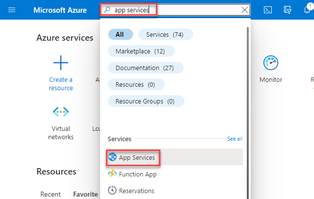 Az App Services lapon válassza a Létrehozás lehetőséget.