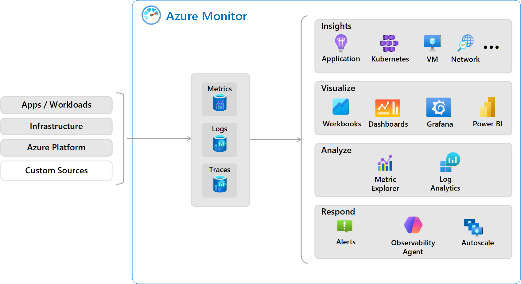 Az Azure Monitor a Microsoft egységes megfigyelhetőségi szolgáltatása a felhőbeli és hibrid környezetekből származó telemetriai adatok gyűjtésére, elemzésére és kezelésére. Lehetővé teszi az Azure-alkalmazások és infrastruktúra-erőforrások állapotának, teljesítményének és megbízhatóságának megértését azáltal, hogy metrikákat, naplókat, nyomkövetéseket és eseményeket egyesít egyetlen megfigyelhetőségi felületen.
