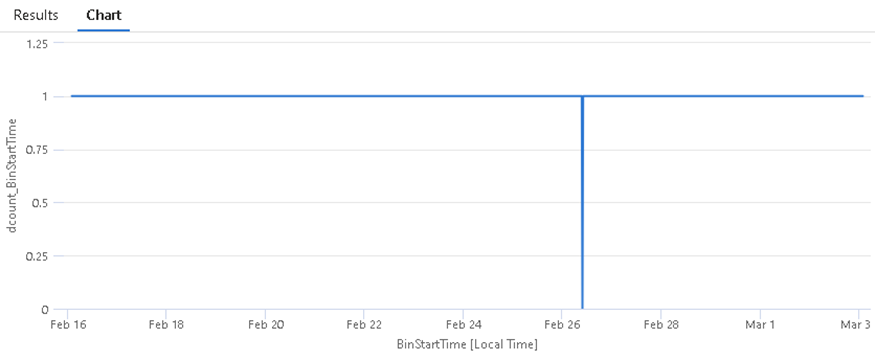 | make-series dcount(BinStartTime) default=0 on BinStartTime from startTime to endtTime step stepSize