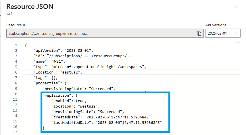 A munkaterület replikációjának engedélyezésekor az Azure Monitor új naplókat küld az elsődleges munkaterületre a másodlagos régióba is. Azokat a naplókat, amelyeket a munkaterületre helyezel, mielőtt engedélyezed a munkaterület replikációját, nem másolja át a rendszer.