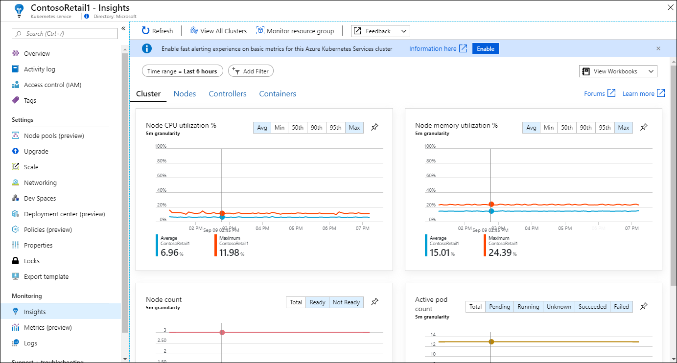 Az Elemzések menüelem megnyitja az erőforrás elemzését, ha az Azure-szolgáltatás rendelkezik ilyen szolgáltatással. Az Elemzések az Azure Monitor adatplatformra és a standard funkciókra épülő, testre szabott monitorozási élményt nyújtanak. Ilyenek például az Application Insights, a Container Insights és a Virtual Machine Insights.