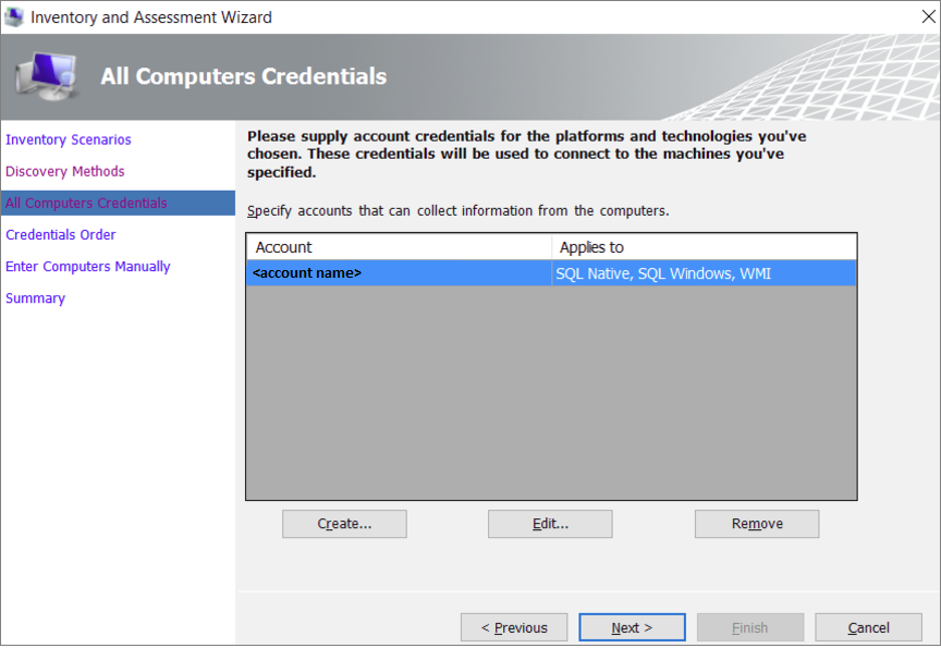 Adjon meg hitelesítő adatokat, vagy hozzon létre új hitelesítő adatokat a felderíteni kívánt rendszerekhez, majd válassza a Következő: