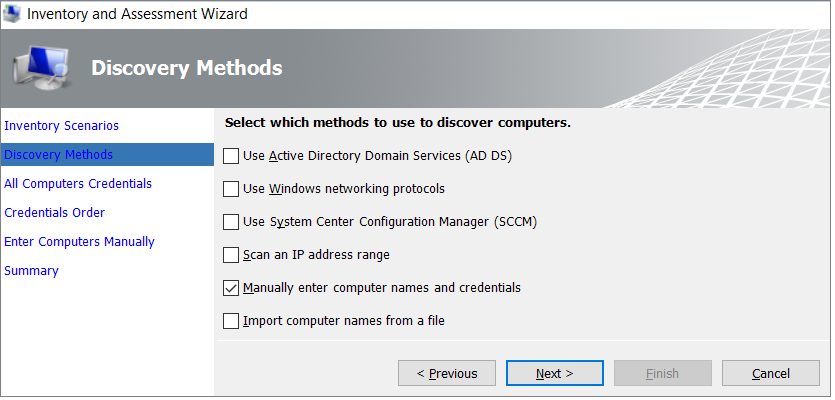 Válassza ki az üzleti igényeinek és környezetének leginkább megfelelő számítógép-keresési lehetőséget, majd válassza a Következő: