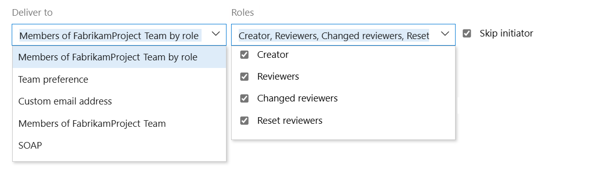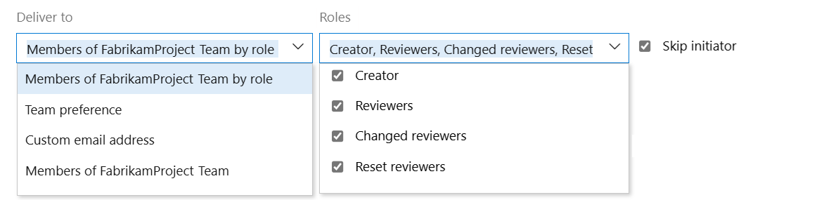 Tagok: <Csapat neve> szerepkör szerint: Csak az eseményhez társított egyes csapattagok kapnak értesítést. Például a munkaelem módosításai esetén előfordulhat, hogy csak a munkaelem aktuális hozzárendeltje kap értesítést.