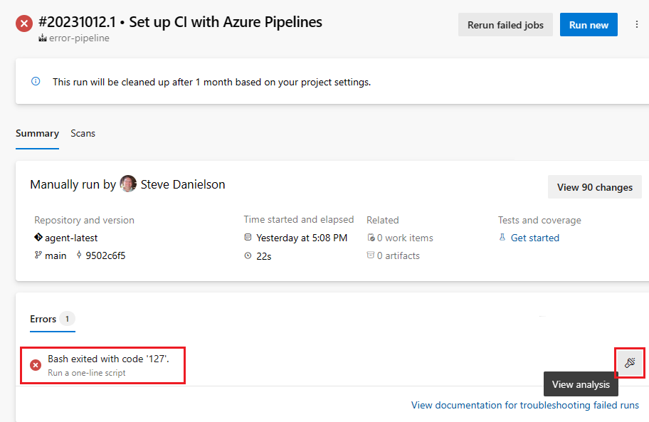 Az Azure DevOps a Feladatelemzések a sikertelen folyamatfuttatásokhoz beállítást biztosítja, amely ha engedélyezve van, előugró értesítéseket biztosít a buildelési hibákról egy jelentés megtekintésére szolgáló hivatkozással.