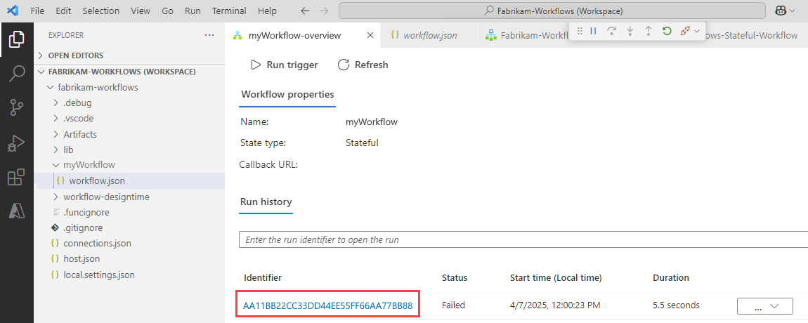 Nyissa meg a workflow.json helyi menüt, és válassza az Áttekintést.
