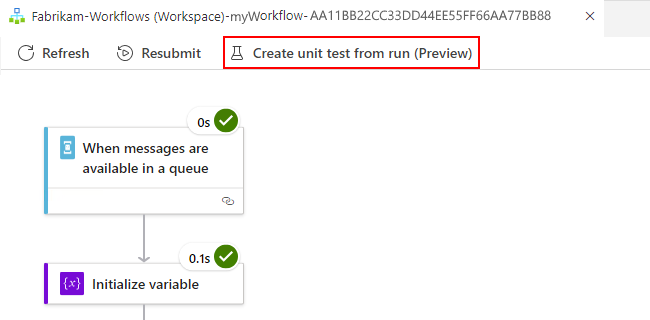 Egységteszt létrehozása munkafolyamat-futtatásból