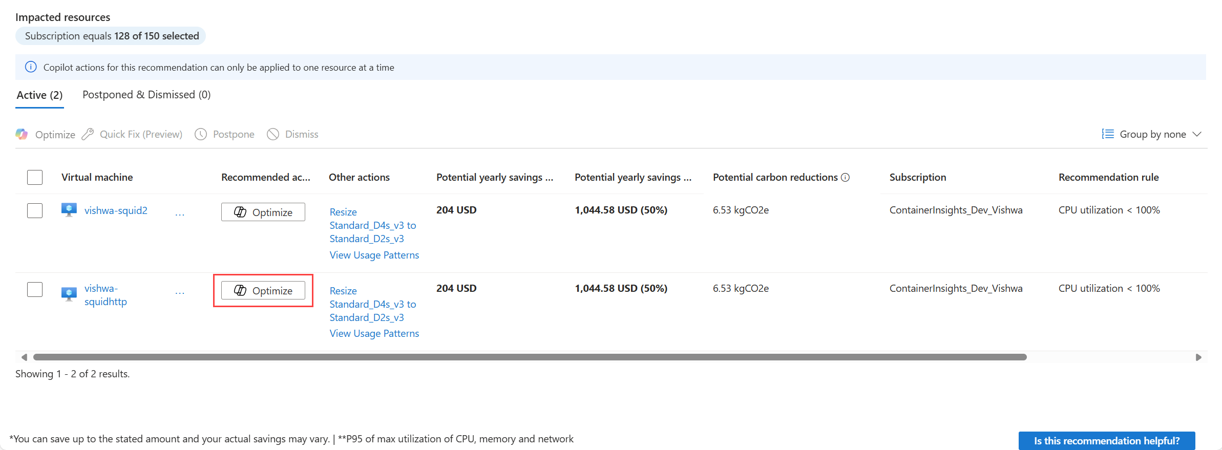 Kattintson az Optimalizálás a Copilottal gombra az optimalizálási áttekintési oldalon elérhető javaslatokon.
