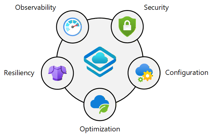 Az alábbi táblázat az egyes menükről és az általa használt Azure-szolgáltatásokról szól. Az összes menü az Azure Advisor használatával is javaslatokat nyújt a konfiguráció javítására. További részletekért tekintse meg az egyes menük dokumentációját.