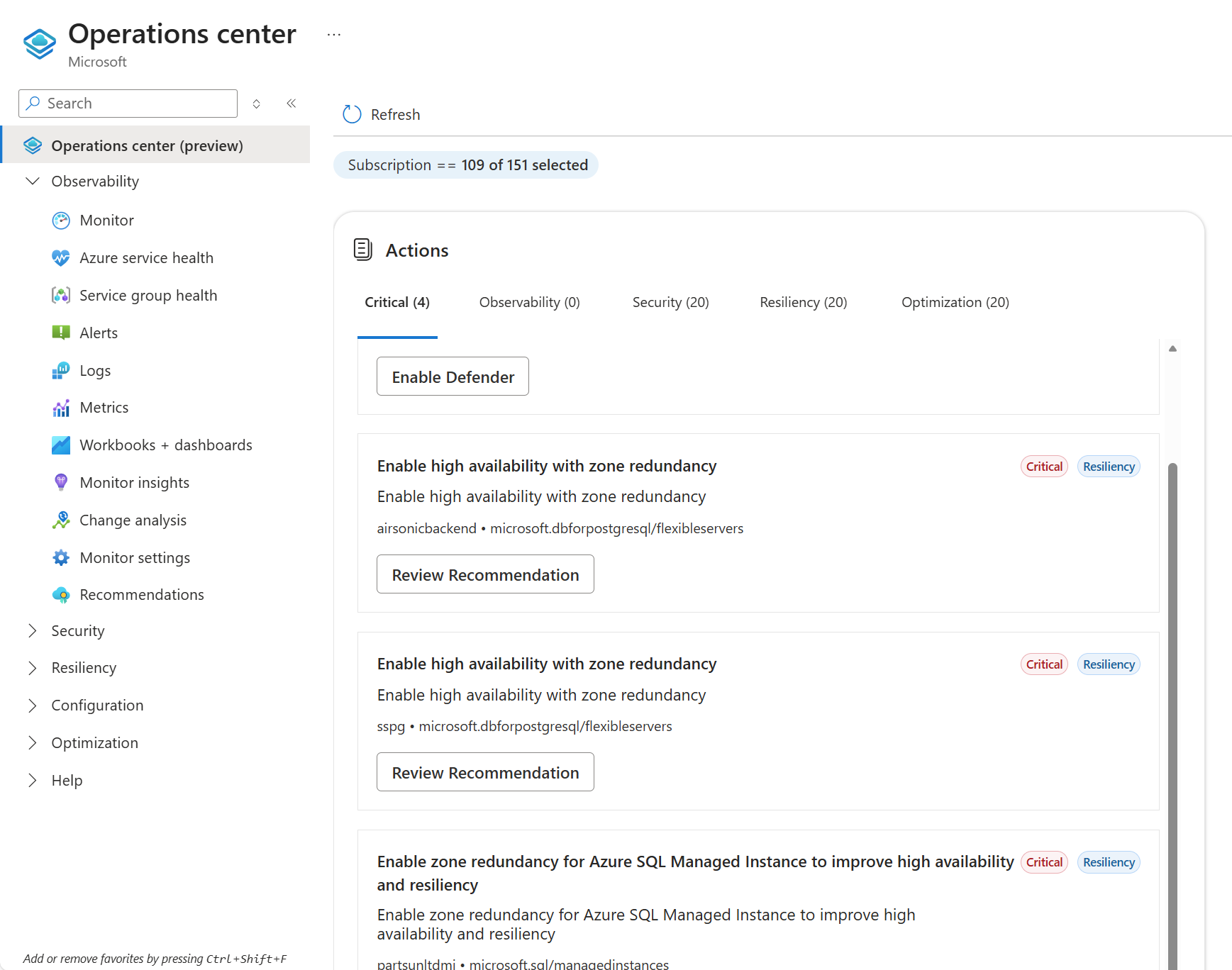 Az Operations Center egy egységes felület a felhőbeli életciklus-felügyelethez, amelynek célja a figyelés, a hibaelhárítás és az automatizálás egyszerűsítése a felhőbeli és hibrid környezetekben. Lehetővé teszi, hogy megtartsa meglévő befektetéseit az Azure felügyeleti eszközeiben, miközben a szolgáltatások konfigurálását és felügyeletét egy közös portálon egyesíti, amelyet az Azure Copilot által működtetett ügynöki munkafolyamatok tovább fejlesztenek.