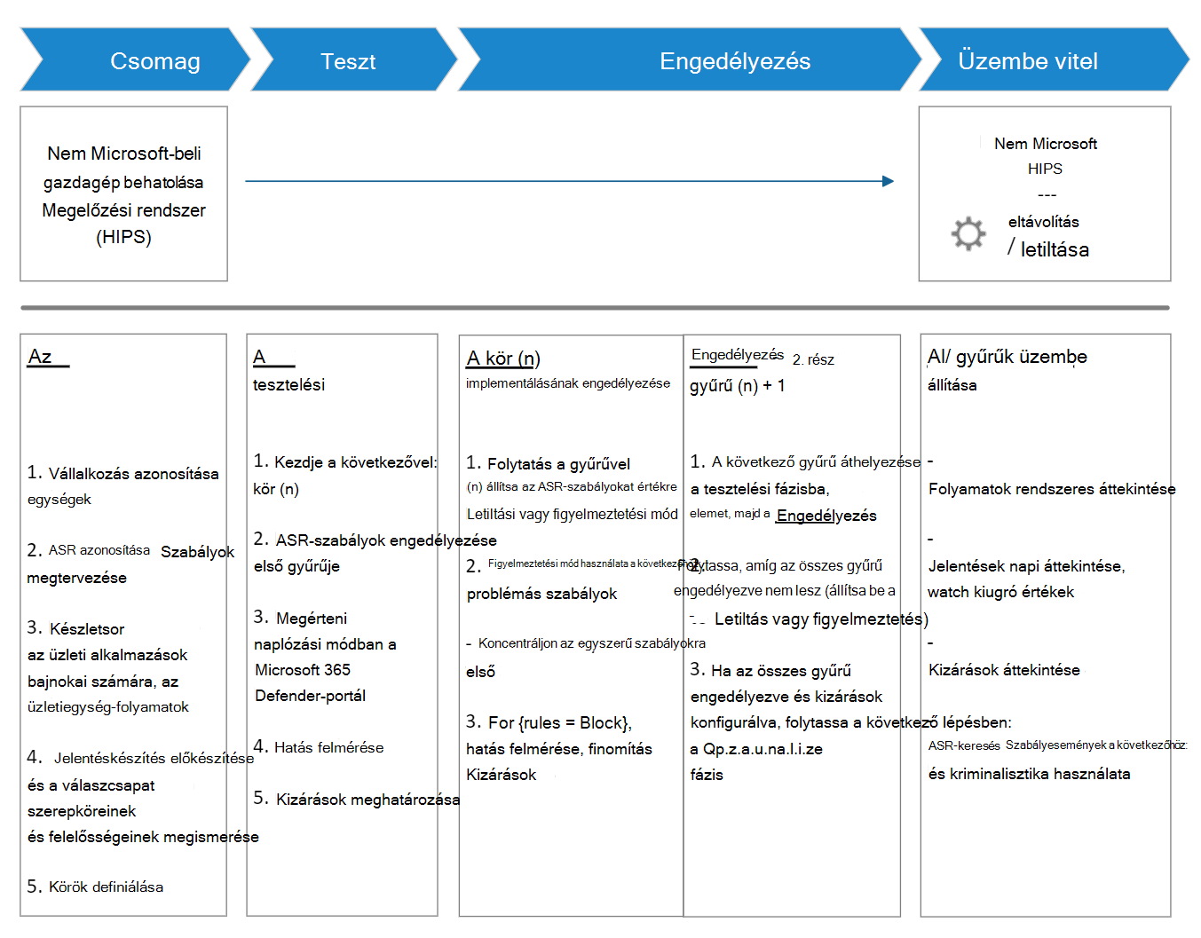 Mint minden új, széles körű implementáció esetében, amely hatással lehet az üzletági műveletekre, fontos, hogy módszeres legyen a tervezésben és a megvalósításban. A támadásifelület-csökkentési szabályok gondos tervezésére és üzembe helyezésére azért van szükség, hogy azok a legjobban működjenek az ön egyedi ügyfél-munkafolyamataihoz. Ahhoz, hogy a környezetben dolgozhassa, körültekintően kell megterveznie, tesztelnie, implementálnia és üzembe helyeznie a támadásifelület-csökkentési szabályokat.