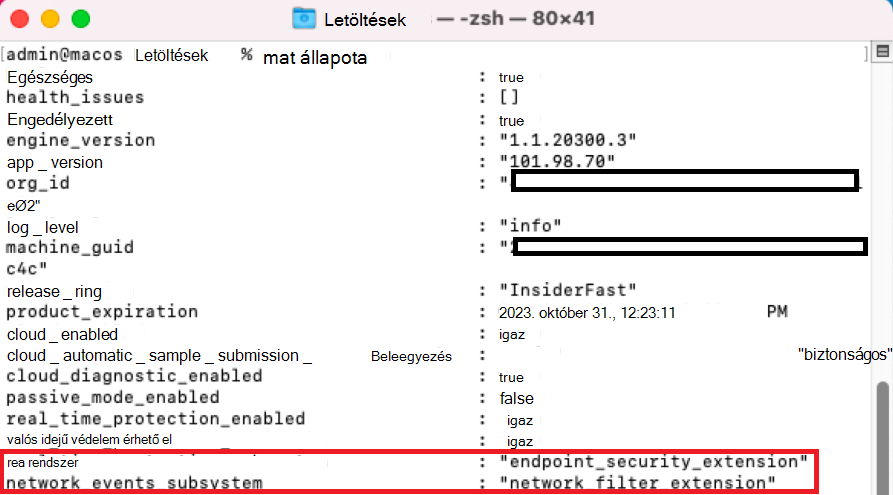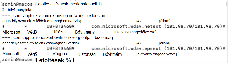 A systemextensionsctl lista futtatásakor a következő képernyő jelenik meg: