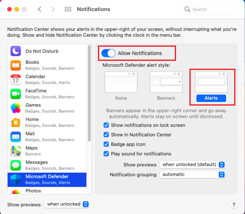 Engedélyezze az Értesítések engedélyezése beállítást; válassza a Riasztások lehetőséget, és őrizze meg az alapértelmezett beállításokat.