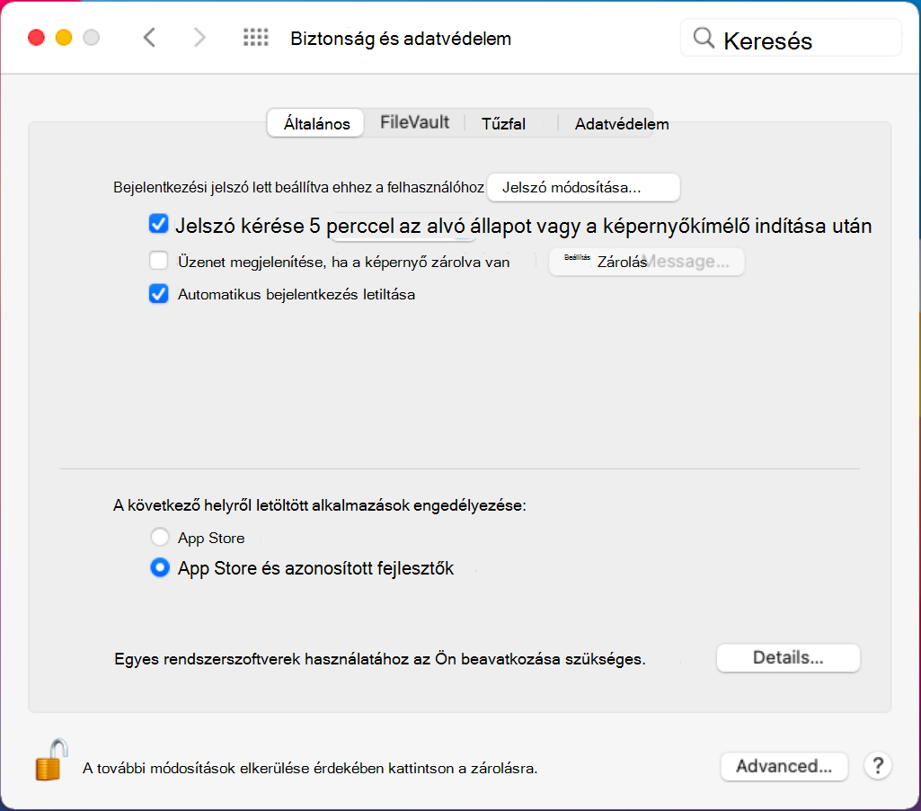 Válassza a Biztonság & Adatvédelem lehetőséget. Megjelenik a Security & Privacy (Biztonsági & adatvédelem) képernyő.