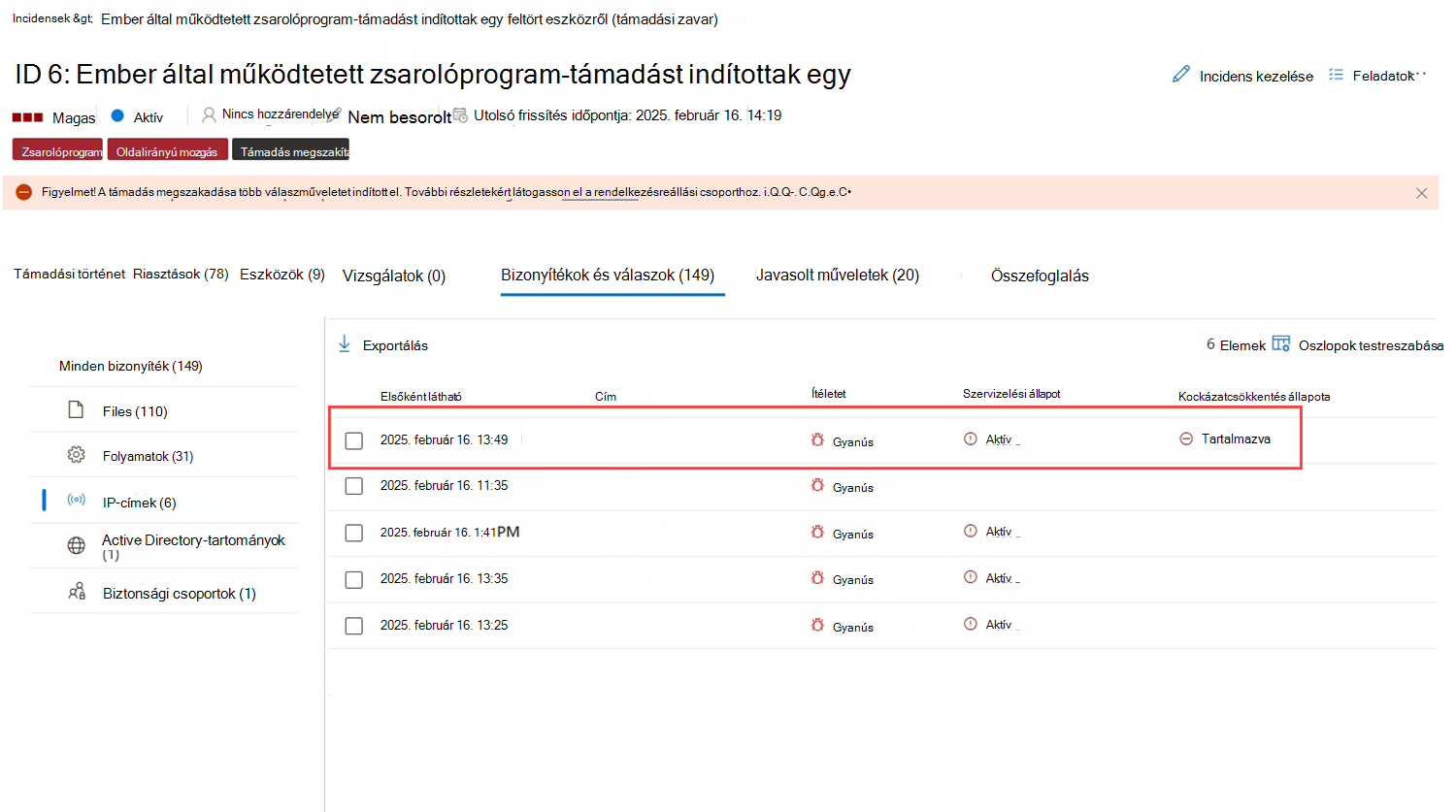 Gyorsan reagálhat az észlelt támadásokra az eszközök elkülönítésével vagy egy vizsgálati csomag gyűjtésével. Az eszközökön végzett műveletek után a Műveletközpontban ellenőrizheti a tevékenység részleteit.