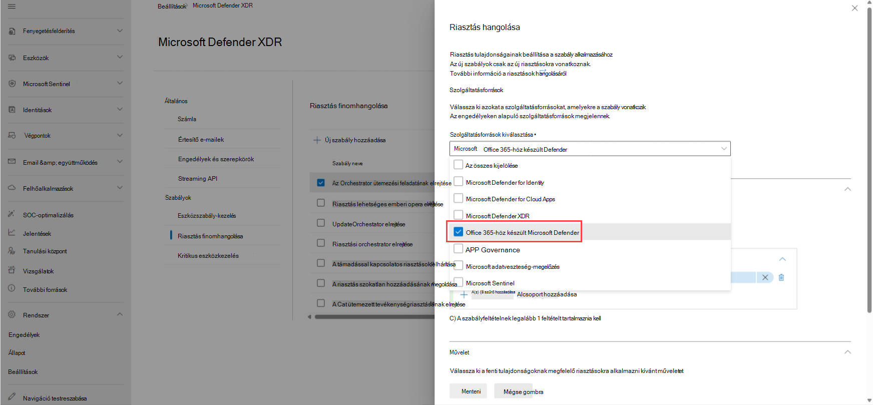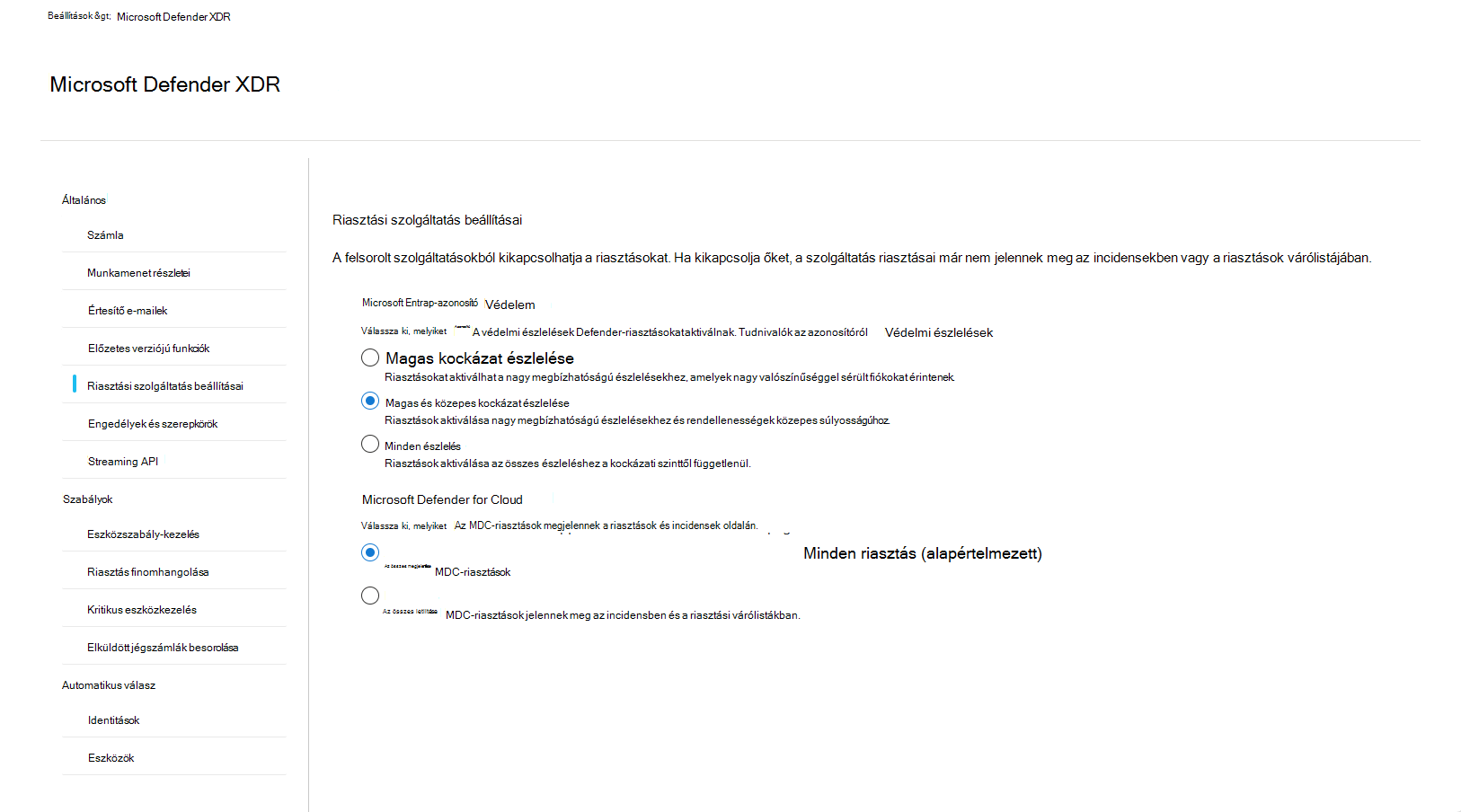 A riasztási szolgáltatás beállításainak konfigurálása a Microsoft Defender XDR: