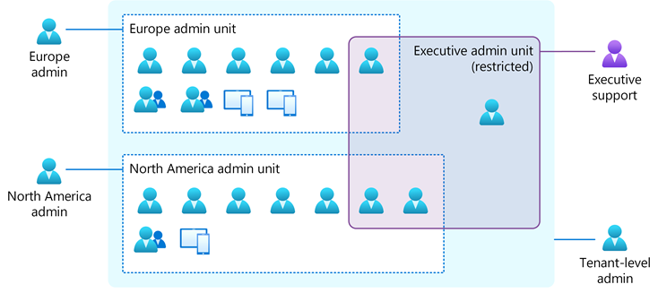 - Előfordulhat, hogy bizonyos műveletek nem lehetségesek, ha egy objektum korlátozott felügyeleti felügyeleti egységben van, ha a szükséges szerepkör nem tartozik a felügyeleti egység hatókörében hozzárendelhető szerepkörök közé. Egy korlátozott felügyeleti felügyeleti egység globális rendszergazdája például nem tudja a rendszer többi rendszergazdája által alaphelyzetbe állítani a jelszavát, mert nincs olyan rendszergazdai szerepkör, amely a felügyeleti egység hatókörében rendelhető hozzá, amely visszaállíthatja a globális rendszergazda jelszavát. Ilyen esetekben a globális rendszergazdát először el kell távolítani a korlátozott felügyeleti felügyeleti egységből, majd egy másik globális rendszergazda vagy kiemelt szerepkör-rendszergazda visszaállítaná a jelszót.