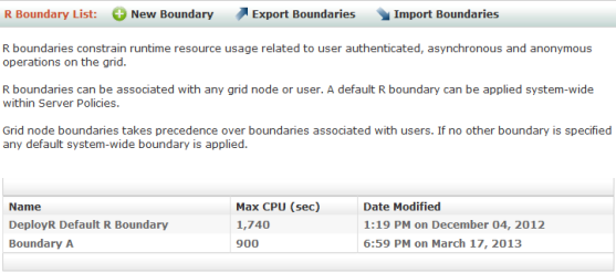 Once you create an R boundary, you can assign it to any grid node or user account in the console. Grid node boundaries take precedence over boundaries associated with individual users.