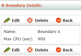 From the R Boundary List page, click the name of the boundary you want to view or edit in the table. The R Boundary Details page appears.