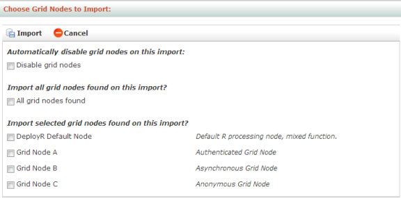 Figure: Choose Grid Nodes to Import page
