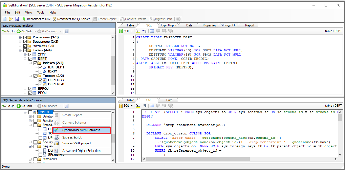 Az SSMA for Db2 használatával áttekintheti az adatbázis-objektumokat és az adatokat, és felmérheti az adatbázisokat a migráláshoz.