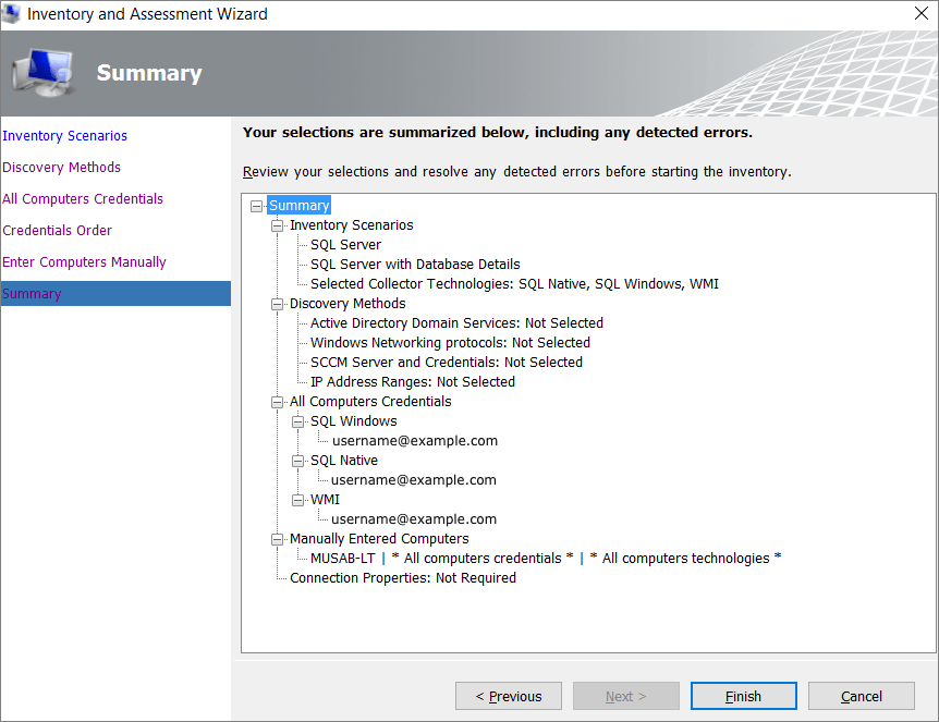 Adja meg az aktuális hitelesítő adatokat, vagy hozzon létre új hitelesítő adatokat a felderíteni kívánt rendszerekhez, majd válassza a Továbblehetőséget.