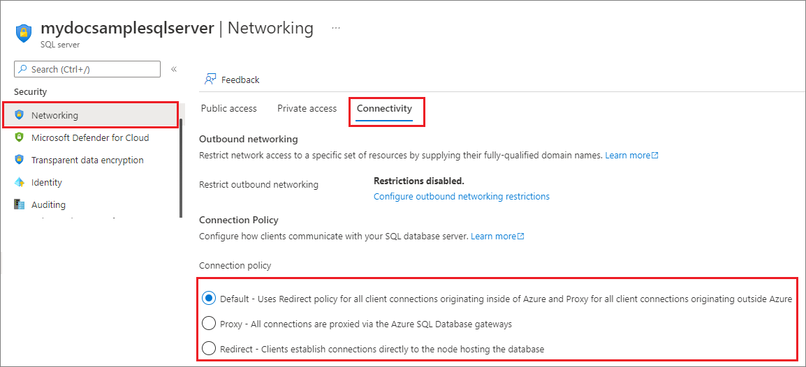 Artikel ini memperkenalkan pengaturan yang mengontrol konektivitas ke server untuk Azure SQL Database dan database SQL di Microsoft Fabric.