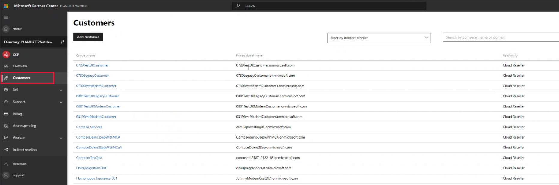 Di Pusat Mitra, pilih CSP untuk mengakses area Pelanggan .