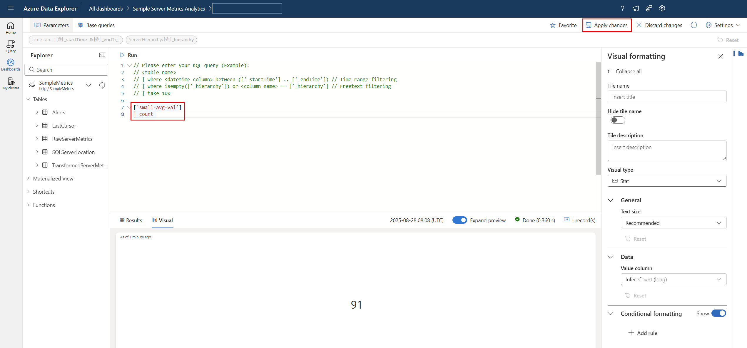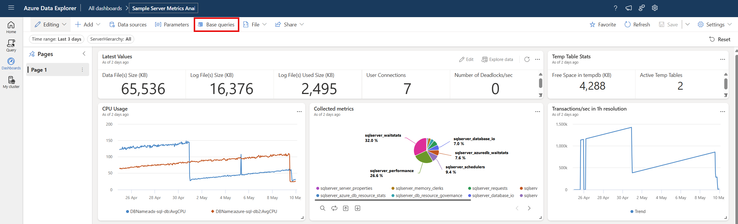 Pembuatan dan manajemen kueri dasar tersedia dalam mode Pengeditan ke editor dasbor.