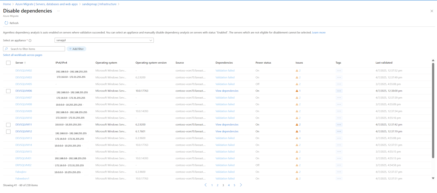 - Analisis dependensi berjalan secara otomatis pada 1.000 server yang ditemukan oleh setiap appliance Azure Migrate yang melewati pemeriksaan prasyarat. Anda tidak perlu mengaktifkannya secara manual lagi.