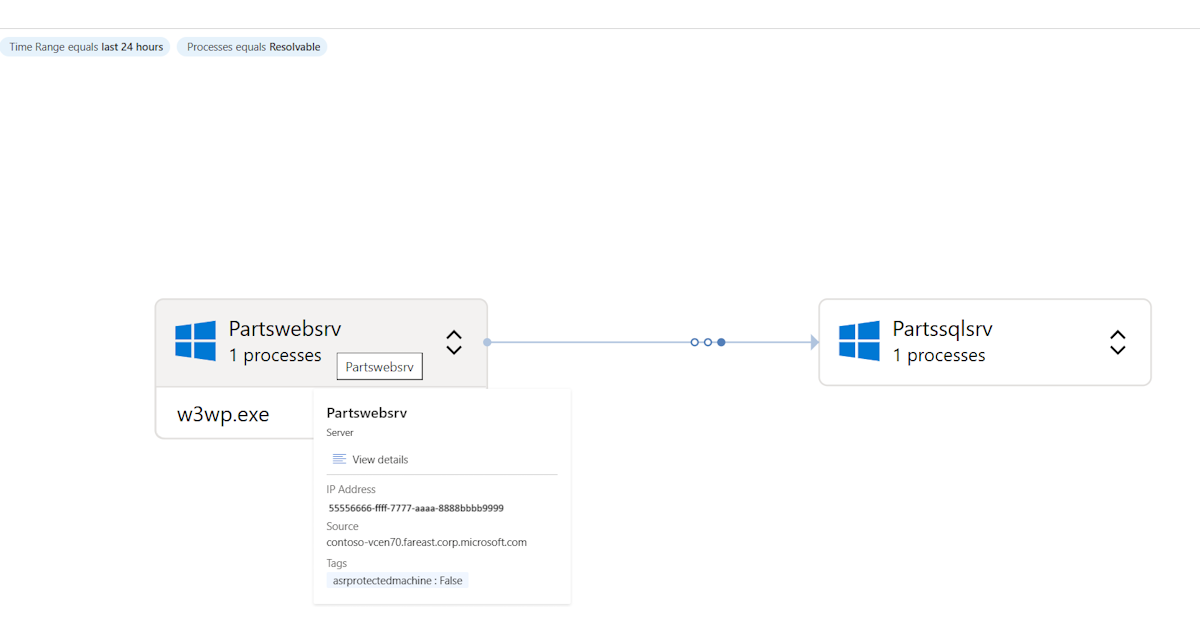 Perluas koneksi apa pun untuk melihat koneksi antar proses antara server tujuan sumber. Detail ini juga mencakup nomor port tujuan yang digunakan di setiap koneksi.