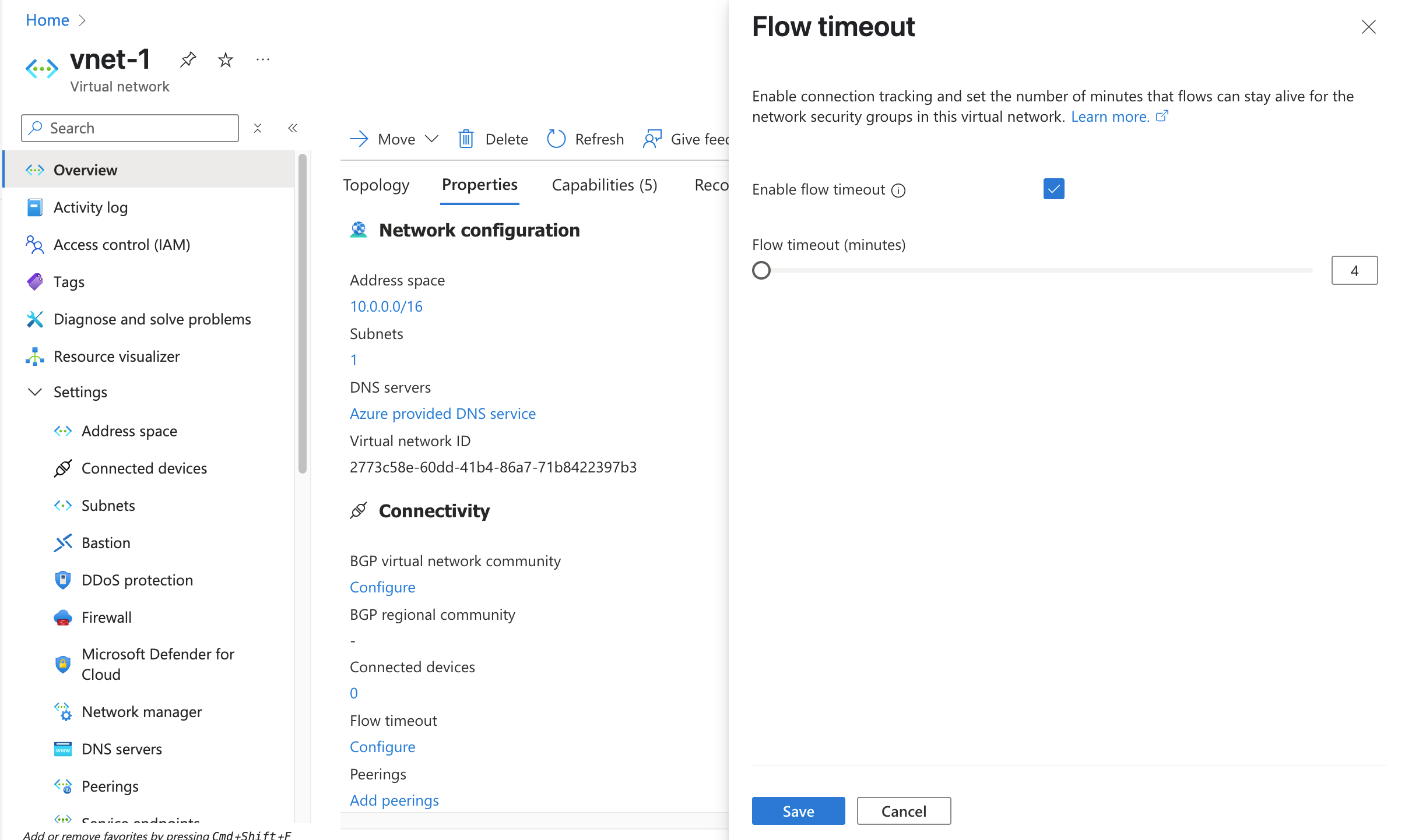 $virtualNetworkConfig.FlowTimeoutInMinutes = 4