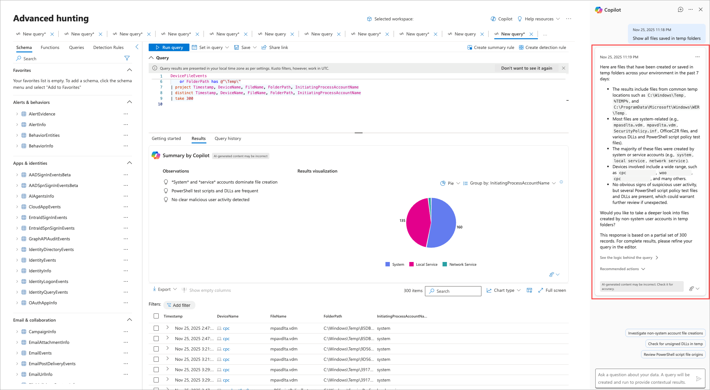 The Threat Hunting Agent revolutionizes threat hunting by enabling you to investigate threats using natural language from start to finish. It not only generates KQL queries but also interprets results, surfaces insights, and guides you through full hunting sessions. These capabilities empower you to hunt threats faster, more accurately, and with greater confidence.