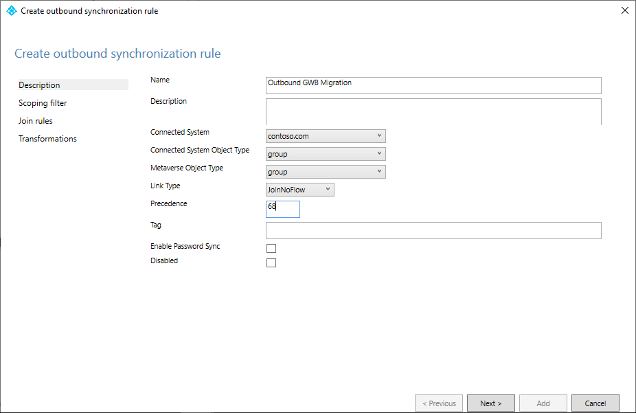 [int] $outboundSyncRulePrecedence = 89Dapatkan Active Directory connector untuk Group Writeback.
