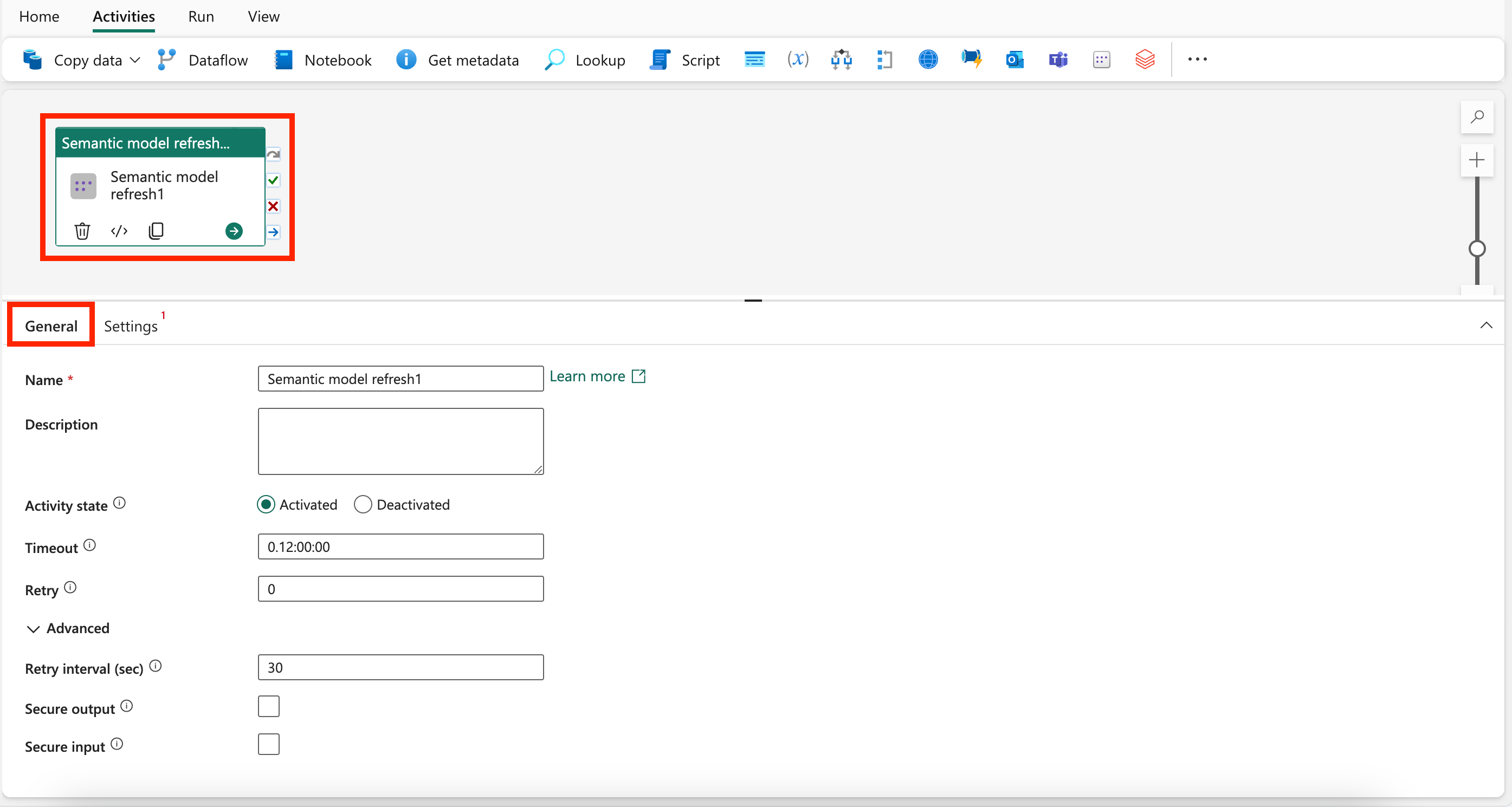 Ikuti langkah-langkah ini untuk menggunakan aktivitas refresh model Semantik di alur Anda: