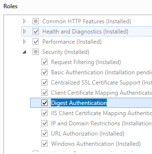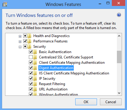 Penginstalan default IIS 7 dan yang lebih baru tidak menyertakan layanan peran autentikasi Digest. Untuk menggunakan autentikasi Digest pada IIS 7 dan yang lebih baru, Anda harus menginstal layanan peran, menonaktifkan autentikasi Anonim untuk situs Web atau aplikasi Anda, lalu mengaktifkan autentikasi Digest untuk situs atau aplikasi.