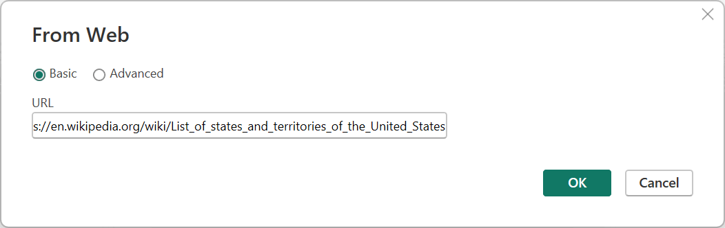 Saat Anda memilih Dapatkan Data>Dari Web di Power Query Desktop, dalam kebanyakan instans Anda memasukkan URL di pengaturan Dasar. Namun, dalam beberapa kasus Anda mungkin ingin merakit URL dari bagian terpisahnya, mengatur waktu habis untuk koneksi, atau menyediakan data header URL individual. Dalam hal ini, pilih opsi Tingkat Lanjut dalam kotak dialog Dari Web .